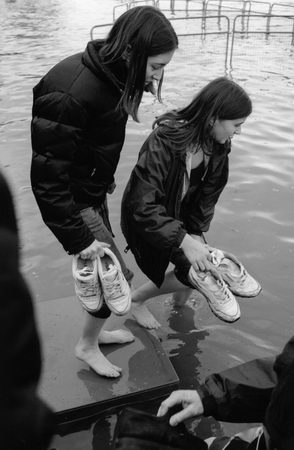 watchers on the tow path at Putney were marooned by the rush of water as the fleet of launches following the race swept by on the incoming tide. I had to paddle like these girls (and all the others in the top picture) and the water was dirty and freezing.
