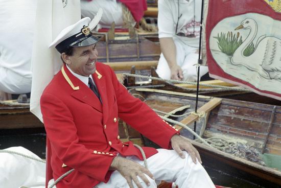 Queen's Swan Master, David Barber, relaxes while his randan is in the lock | ||