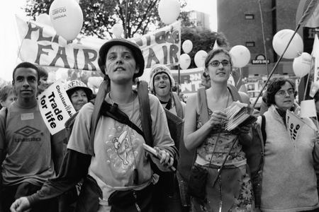 the trade justice parade was a serious event but also we were having some fun. the world trade organisation isn't at all amusing, but i loved the t-shirt that said 'wto - unsuitable for anyone with a conscience.