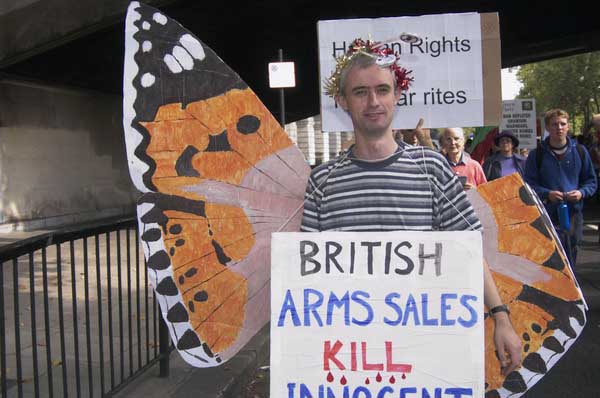 Demonstration agains the London arms fair more