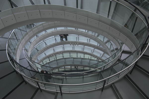 the best bit about the building is the stairs, spiralling apparently rather drunkenly down into the assembly chamber.