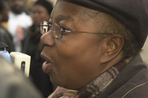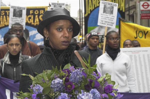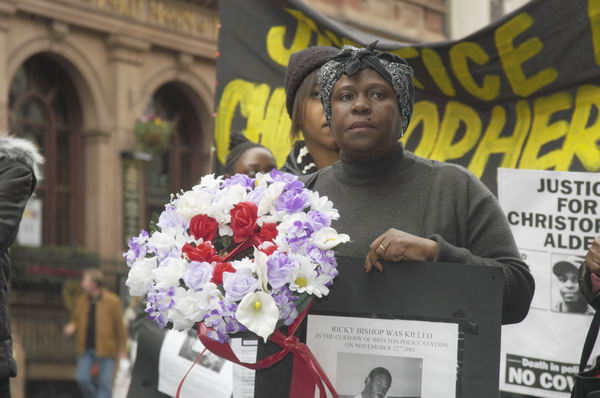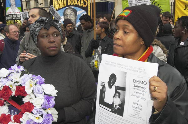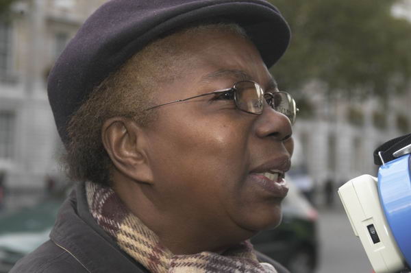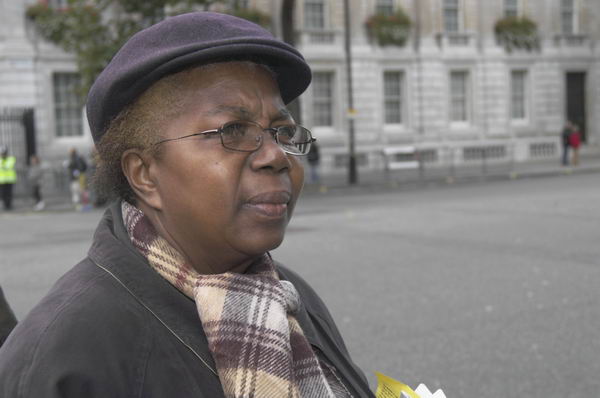 ![]() Joy Gardener's mother spoke in Whitehall, opposite Downing Street |
