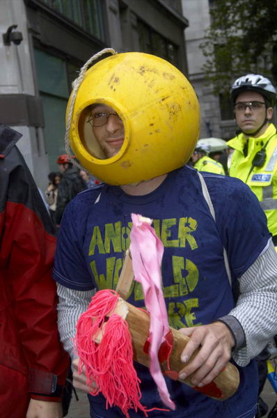 European Social ForumLondon, Friday 15 Oct, 2004:London Underwater 2050 tour of the G8 Climate Criminals![]() Another demonstrator equipped for rising sea levels |