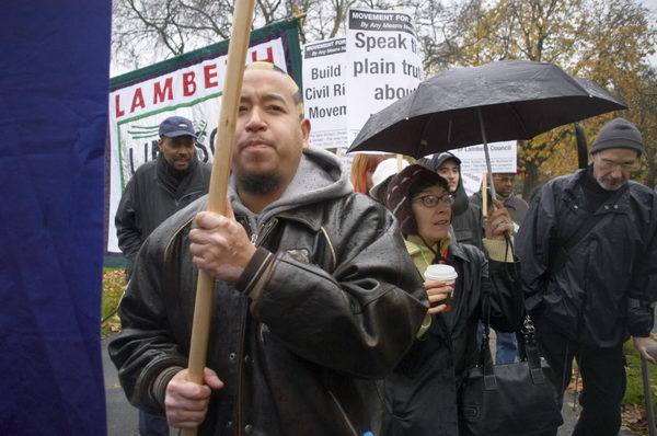 i left the ivorians as they started on their way to the french embassy and took a 159 to kennington park. the movement for justice had called for a national march and rally to stand up for equality and integration. there were also some more specific aims directed against the loca lambeth who were accused on institutional racism, particularly over the firing of union representative alex owolade for speaking out against racism.