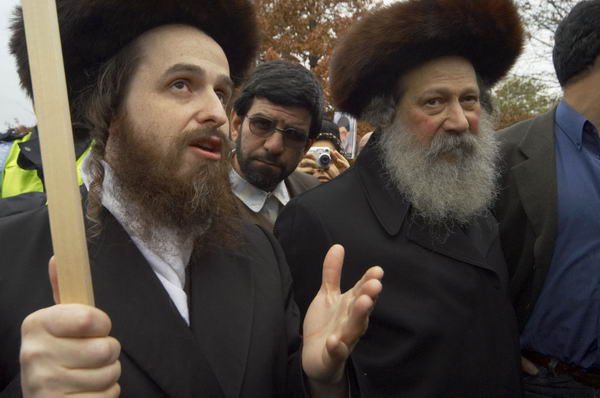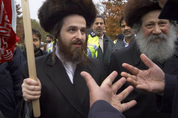 ![]() ![]() Leaders of various communities at the march. The Neturei Karta anti-Zionist ultra orthodox jews came to give their support. |