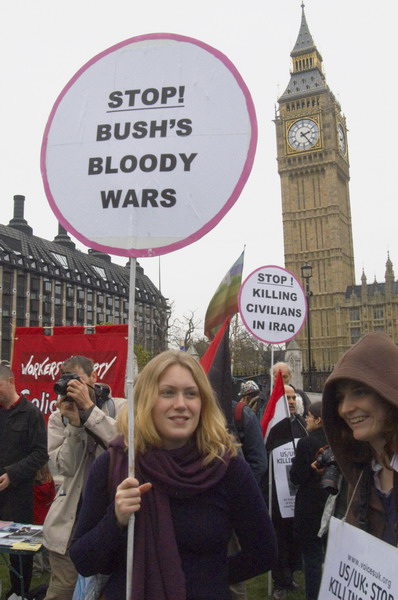 ![]() ![]() Voices UK were one of the organisers of the protest against the killing of Iraqis. |