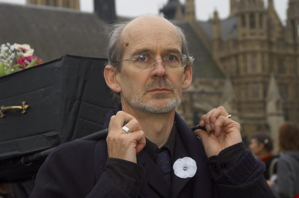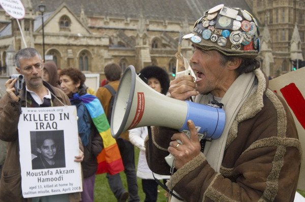 ![]() The white poppy symbolising peace and remembrance. ![]() Brian Haw speaks, whle he is being watched and filmed by an Iraqi doctor who works in a Surrey hospital. |