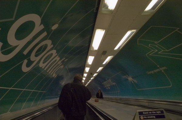 ![]() Moving Walkway down to the Waterloo and City Line (the Drain), Bank, London. |