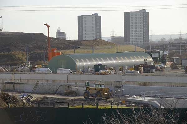 ![]() Channel tunnel rail link and works from Bully Point nature reserve, Stratford, London |
