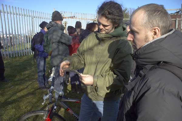 ![]() Annie talks to the No London 2012 walkers at Eastway/Waterden Rd junction. ![]() No London 2012 walkers at Arena Field, Hackney WIck. Note the raised ground level after landfill. |