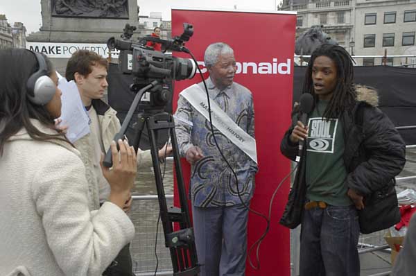 ![]() And the only way anyone could conduct an interview with Nelson Mandela, here wearing a Make Poverty History sash for Action Aid. |