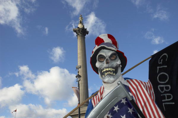 ![]() Uncle Sam the Grim Reaper with Nelson in Trafalgar Square |