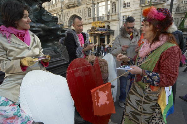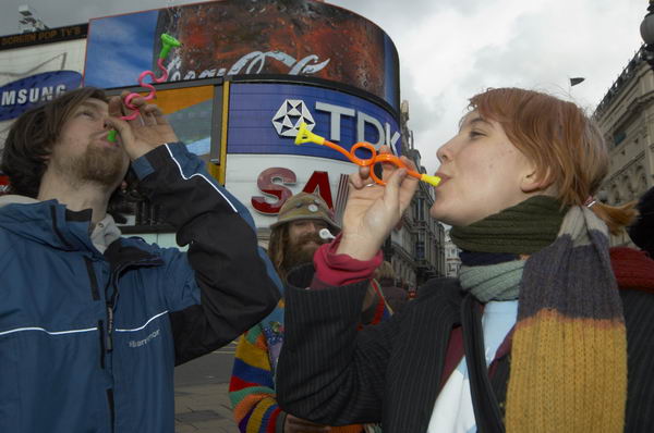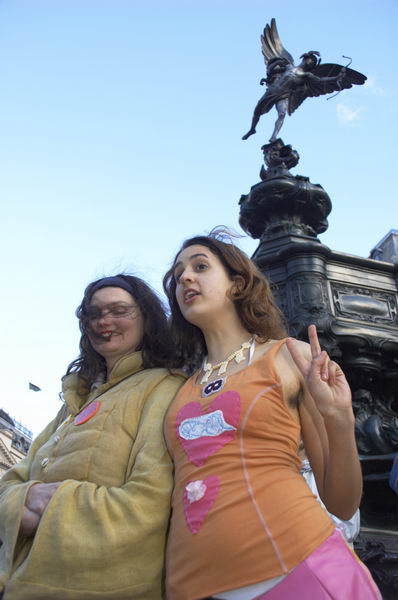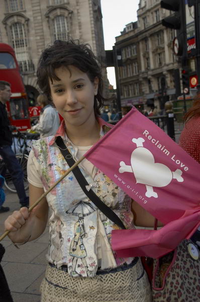 O-I-L One in LoveReclaim Love, Eros, Picadilly Circus, London, 12 Feb, 2005![]() ![]() Left: Reclaim love flag. Right. China is persecuting Falun Gong supporters for adhering to truth, compassion and tolerance. |