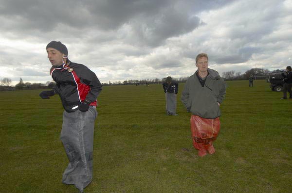 ![]() At last, Hackney marshes. These football pitches will be concreted car parks for the Olympics. ![]() Time for fun and games and warming up a bit on Hackney marshes ![]() The Sack race was a fiercely contested event. ![]() |