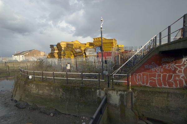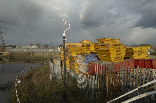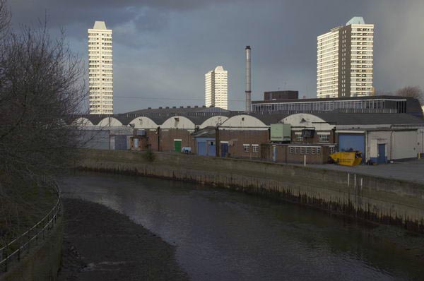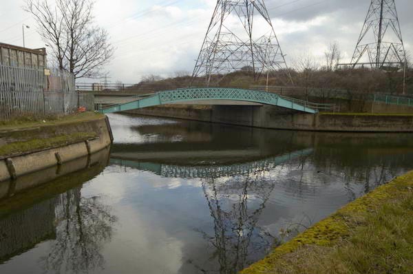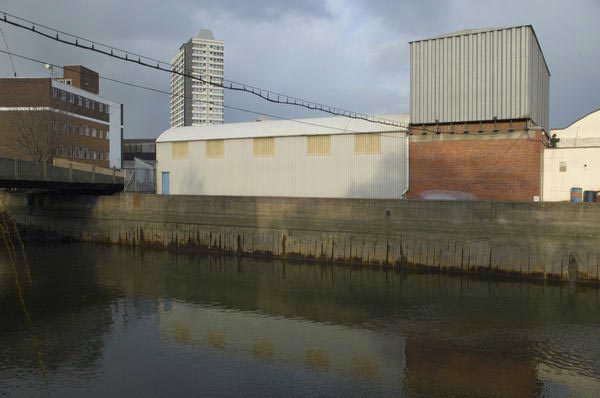 ![]() Bridge to railway yard over Waterworks RIver, Stratford ![]() Waterworks River, Stratford ![]() Waterworks River and Stratford tower blocks. |