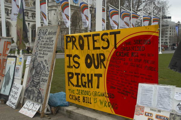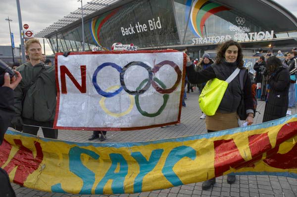 signs on the square are no augmented by a line of mute london 2012 flags,