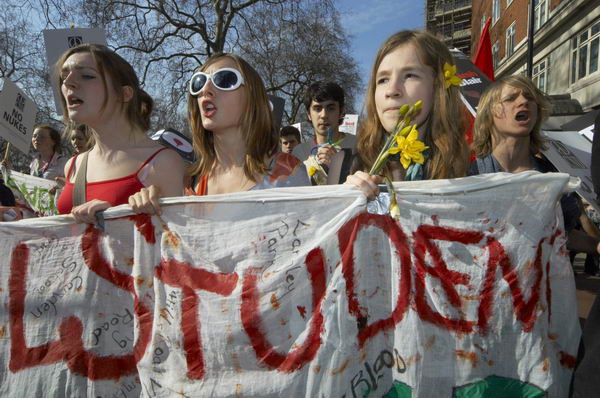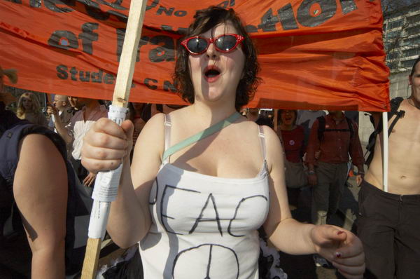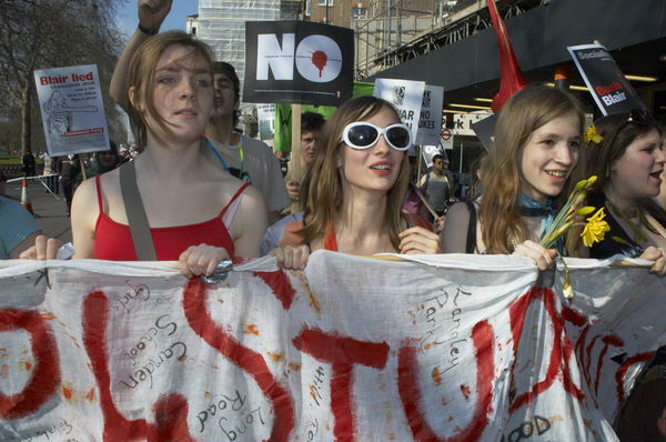 Bring the Troops HomeStop the War March and Rally, Hyde Park-Trafalgar Square, London, 19 March 2005![]() School students on the march in Park Lane |