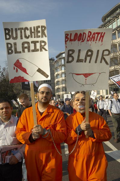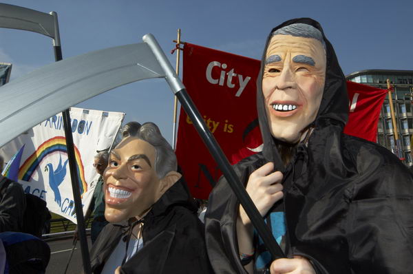 Bring the Troops HomeStop the War March and Rally, Hyde Park-Trafalgar Square, London, 19 March 2005![]() Bush and Blair as death's grim reapers |