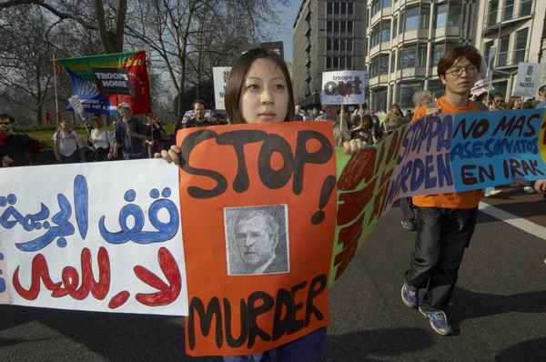 ![]() Mini Nukes are a new threat to us all, making nuclear use more acceptable to the military planners ![]() This multi-lingual banner read "Stop Murder!", calling for no more killings in Iraq. |