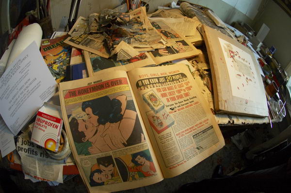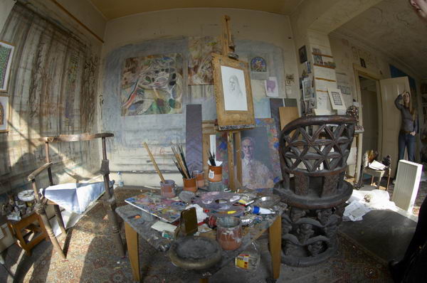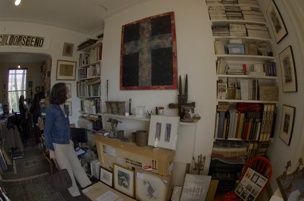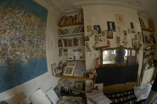 Tom PhillipsA visit to the artist's Camberwell studio![]() Portrait studio in Tom Phillips's house in Camberwell with one of his assistants in the doorway, right . |