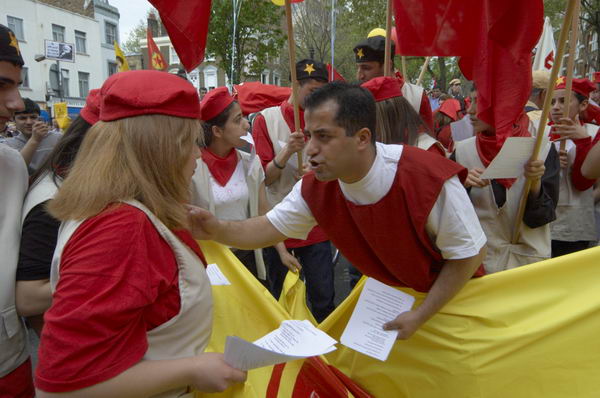 Long Live May Day!May Day march, Clerkenwell Green, London, May 1, 2005![]() Some vital instructions |