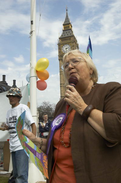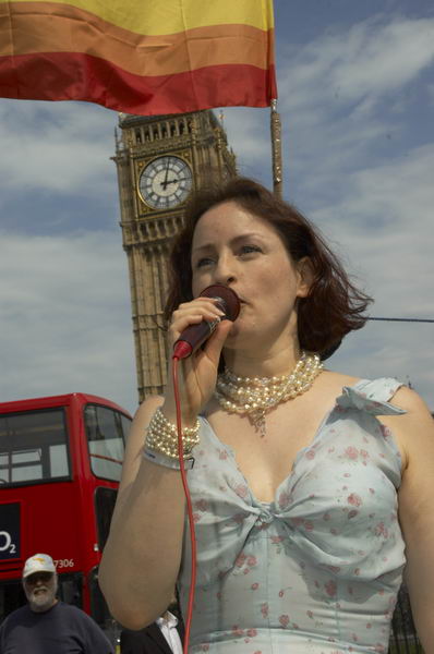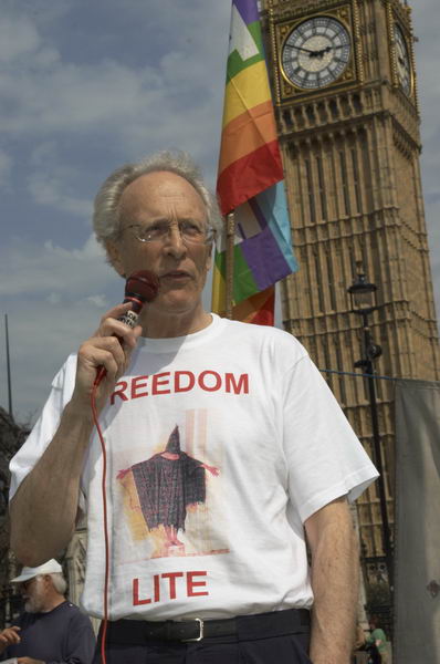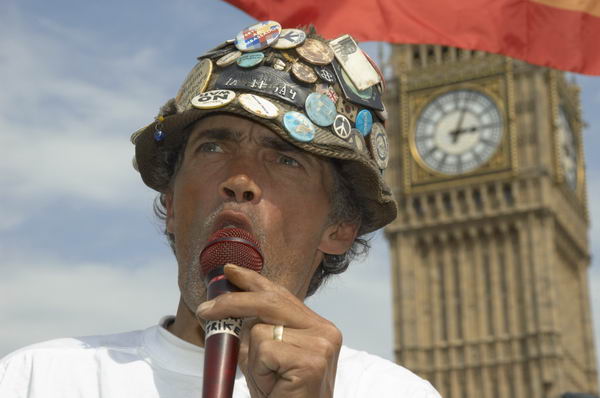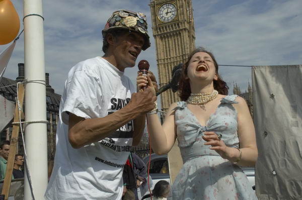 ![]() Big Brian and Big Ben. Brian Haw at the mike in Parliament Square |