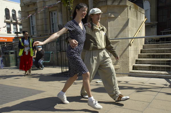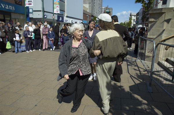 ![]() Doing the Lambeth Walk in Ilford ![]() Some remembered the dances of the 1940s and joined in. |