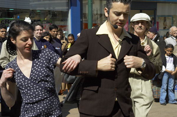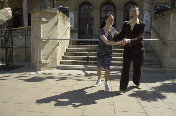 ![]() Teaching the bystanders to dance was not always straighforward. |