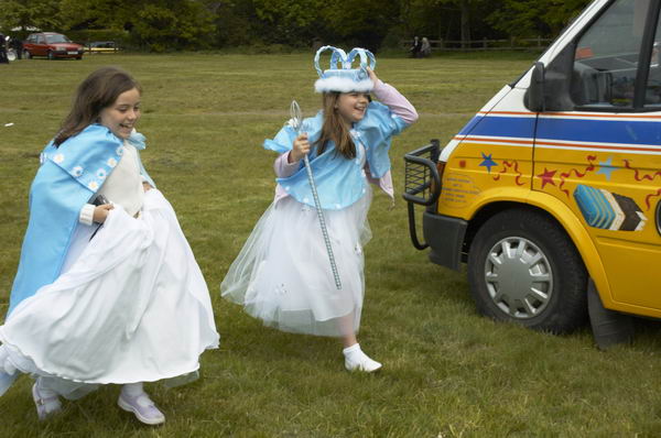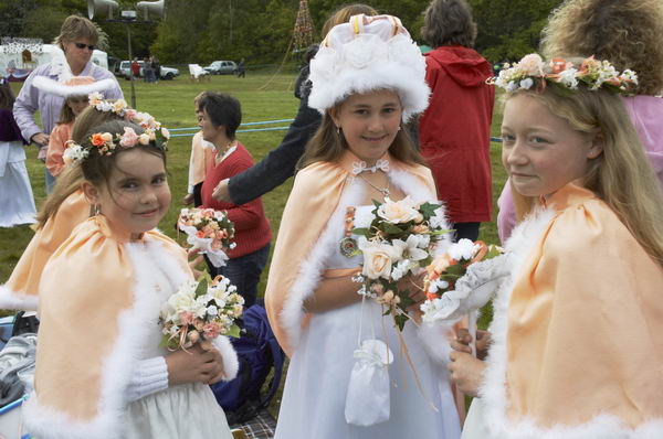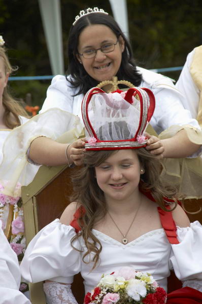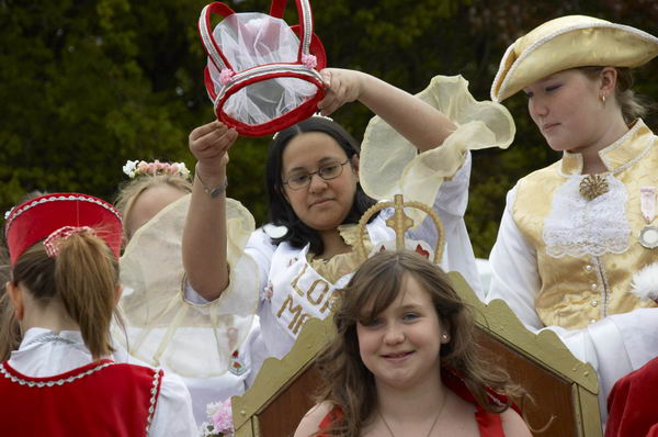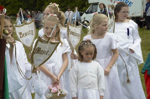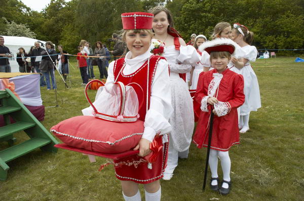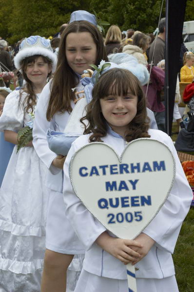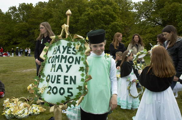 Merrie England and London May Queen FestivalHayes Common and Hayes Village, Kent, 14 May 2005![]() Crown bearer, page and queen |