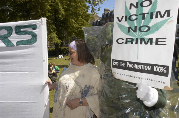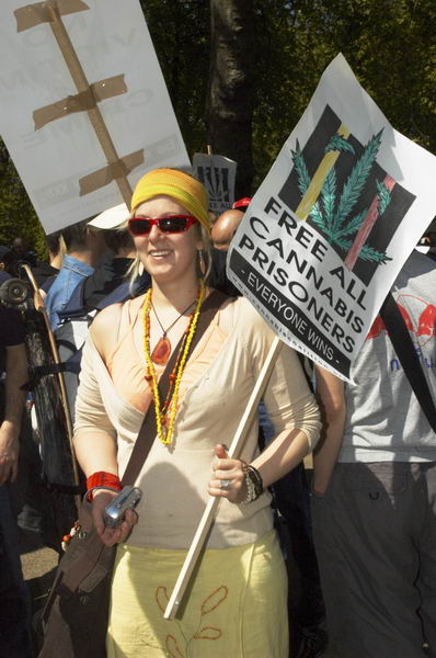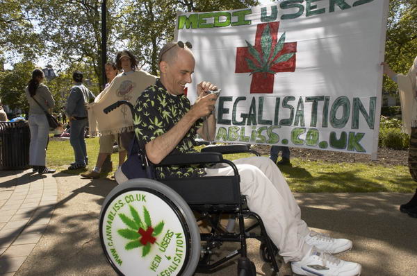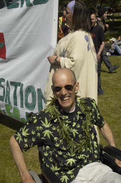 Cannabis Education March & RallyRussell Square to Trafalgar Square, London, 15 May, 2005![]() One of the campaigners for medical use in a wheelchair |
