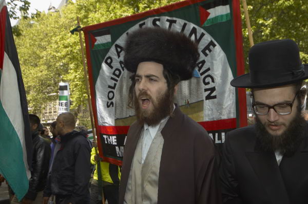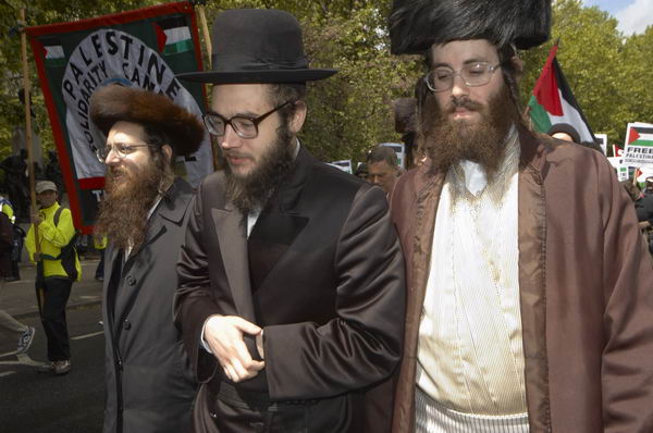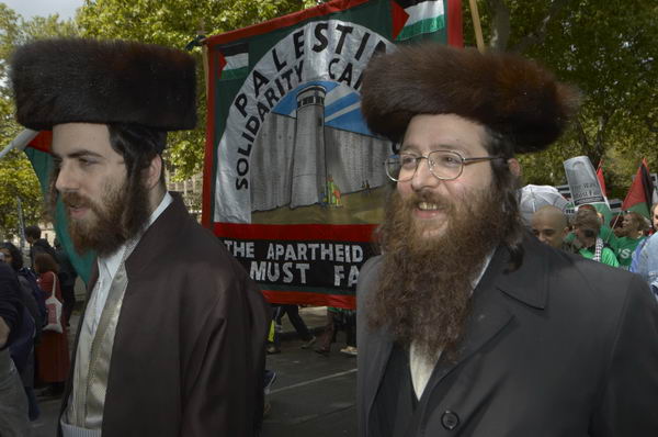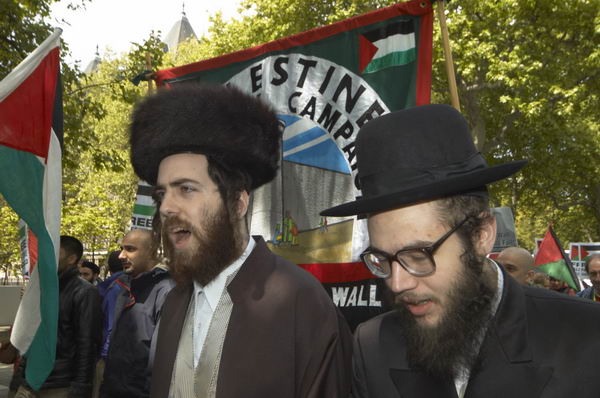 ![]() Ultra-orthodox Neturei Karta rabbis joined the demonstration in protest against Zionism |
