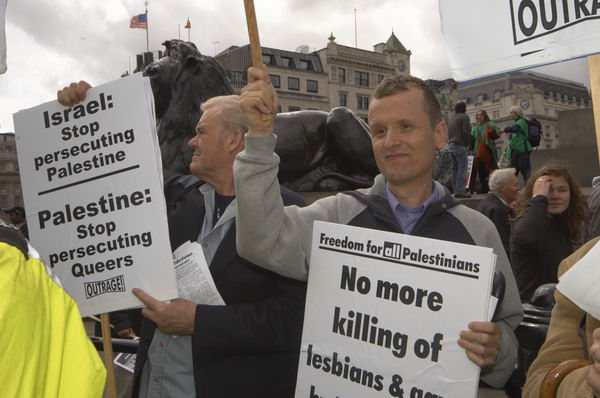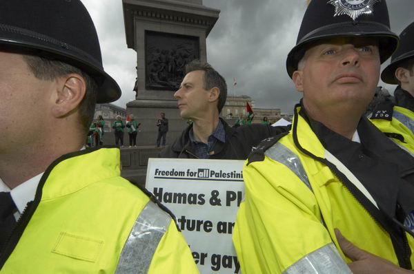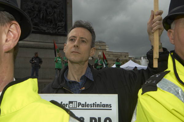 ![]() A demonstrator talks to Peter Tatchell ![]() |