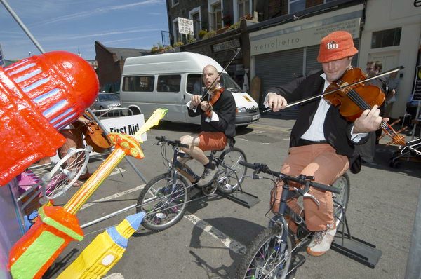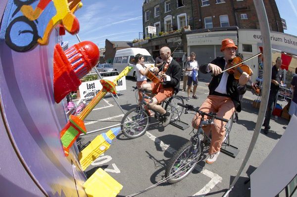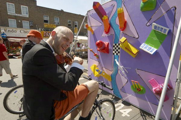 ![]() Pluck's cycle-powered cycle race - the North London cyclist (top left) is approaching Nelson's Column and Big Ben. |