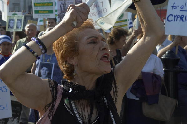 Divided CyprusGreek Cypriots protest in Trafalgar Square, London. 16 July 2005