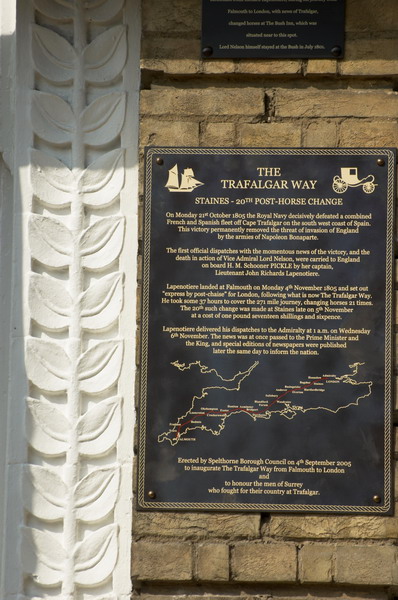 The New Trafalgar DispatchStaines, 4 Sept, 2005![]() ![]() The Trafalgar Way plaque and above it a smaller Spelthorne plaque were unveiled by the Mayor |