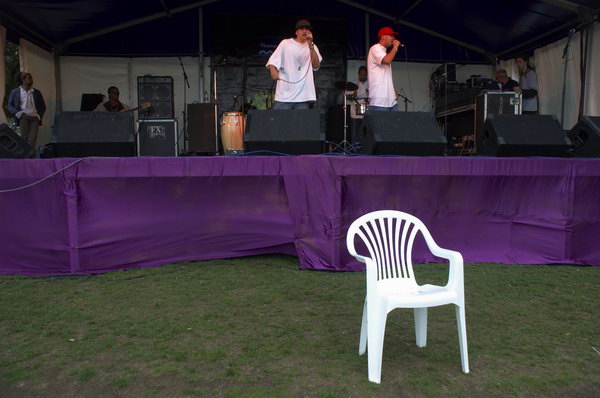 ![]() ![]() Left: the choir in the scoop with City Hall and Tower Bridge, London. Right: on the main stage in Potters Fields |
