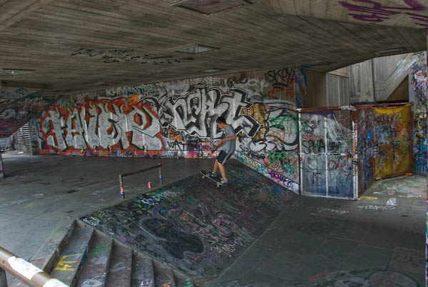 ![]() Next door the National Theatre is moulting. A lone figure on the roof |