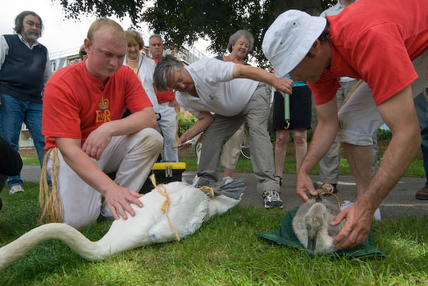 ![]() The cygnets are weighed and measured and all the birds are give a quick health check. |