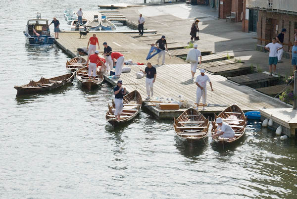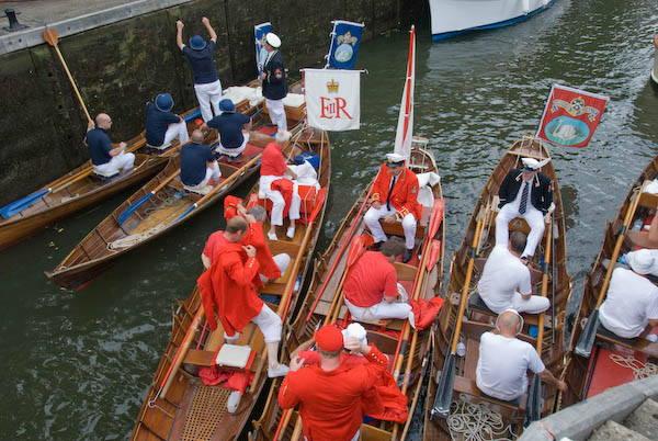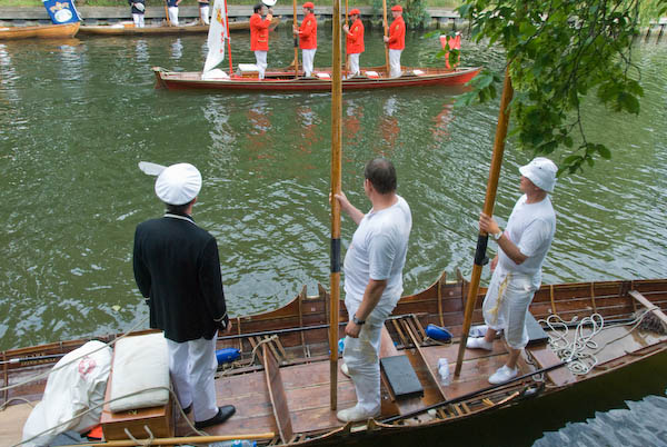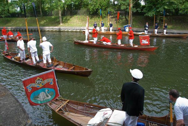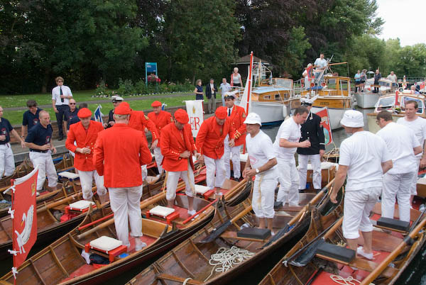 ![]() The Dyers and Vinters salute the royal men, all standing with oars held high |