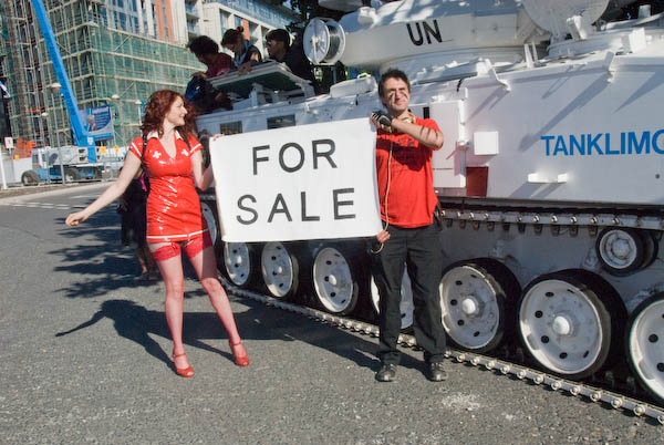 Space Hijackers Auction Tank at Arms FairExCeL West Entrance, Victoria Dock, London. Tues 11 Sept, 2007