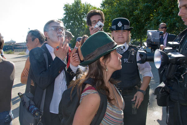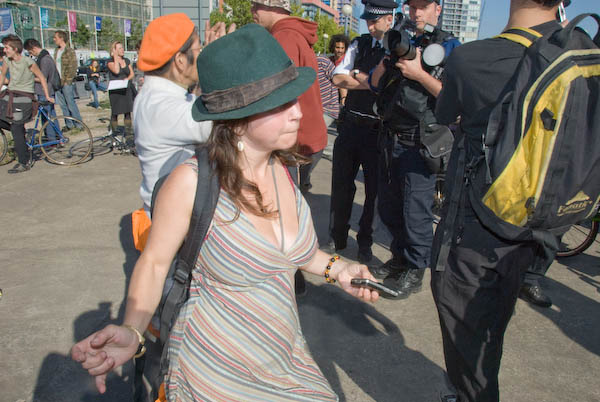 ![]() Critical mass arrive - they cycled around the roundabout to block access for some time |