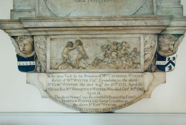 ![]() Edward Wynter's feats of crushing a tiger to death and overcoming 60 mounted moors are shown in the relief. |