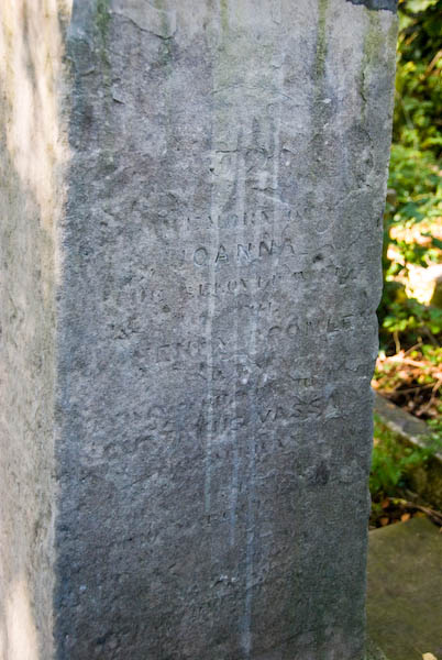 ![]() ![]() Joanna Vassa's gravestone, re-discovered in 2005. Inscriptions for Joanna (left) and her husband, Henry Bromley. |