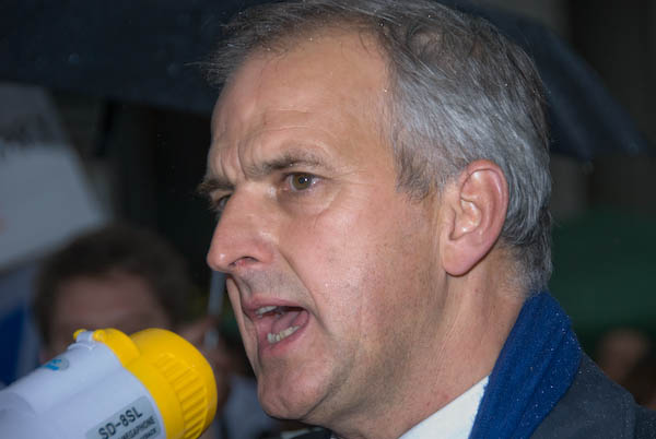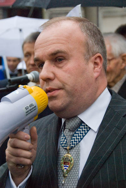 ![]() Police stopped the use of the PA system and the event had to continue with just this small megaphone |