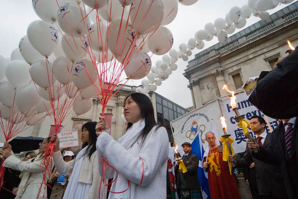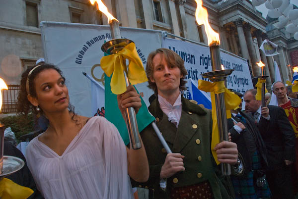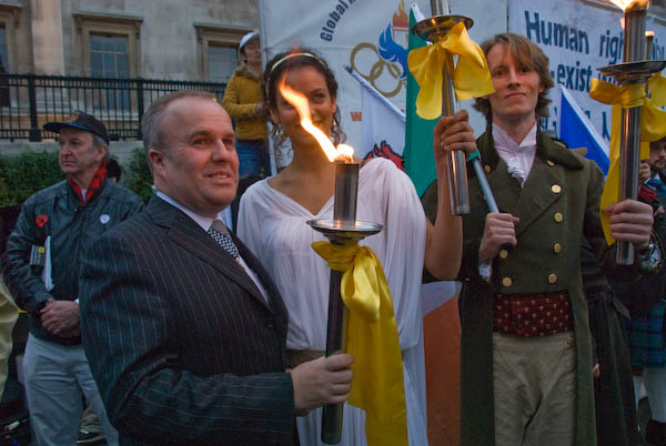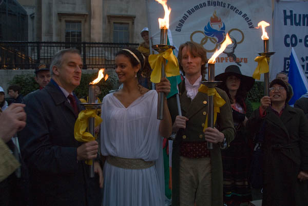 Global Human Rights Torch RelayTrafalgar Square/Chinese Embassy, London Thur 25 Oct, 2007Lighting the English flame |