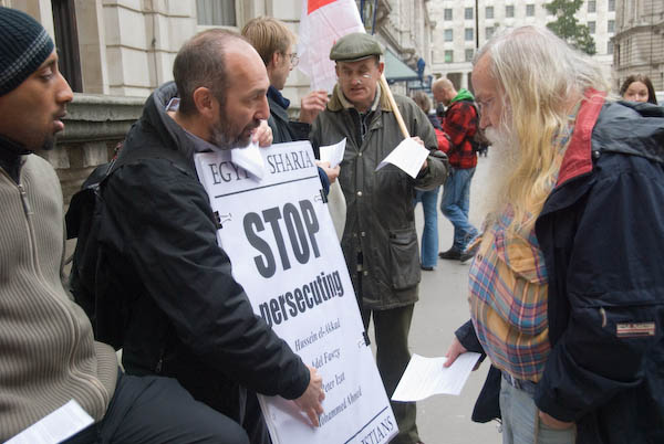 ![]() Back in Whitehall place, some guys were there to protest about the persecution of Christians in Egypt |