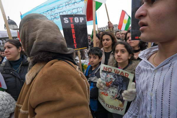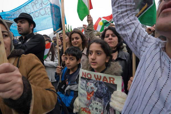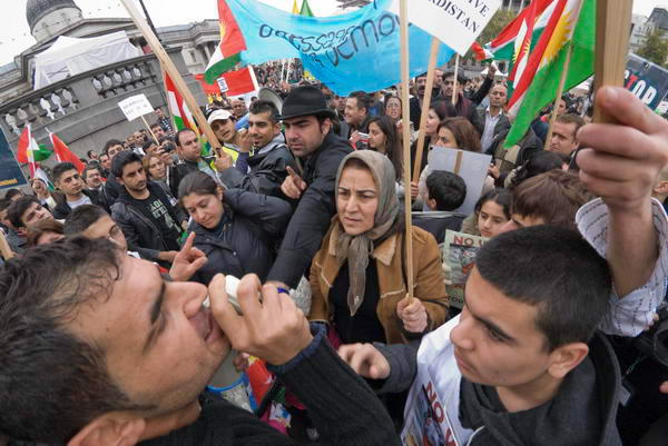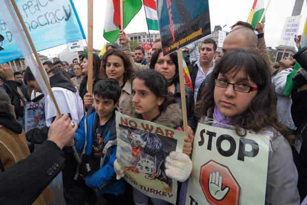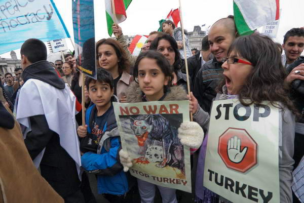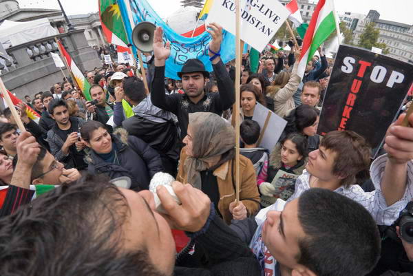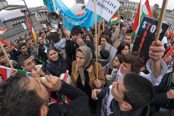 Kurds Demand - Stop TurkeyTrafalgar Square, London. 27 October 2007A large crowd of Kurds in Trafalgar Square protest against planned Turkish raids |