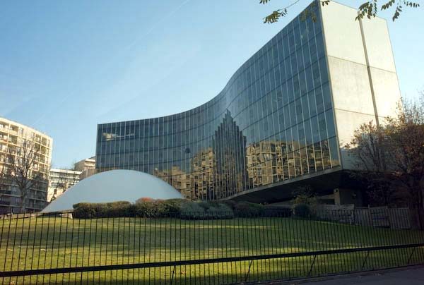 ![]() PCF building in Place du Colonel Fabien by Oscar Niemayer (1965-80.) Much is underground. |