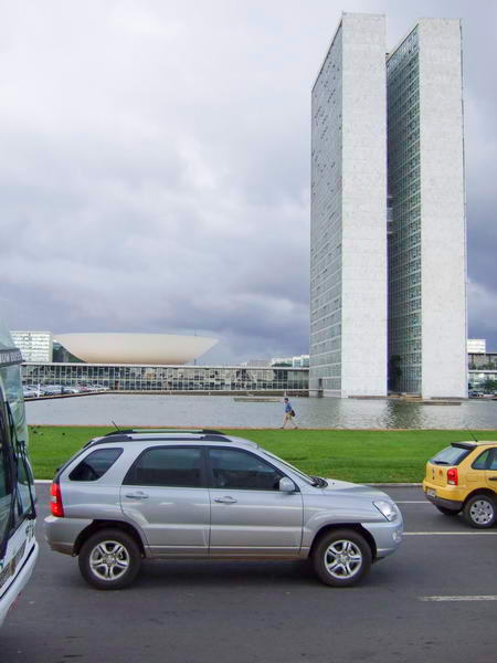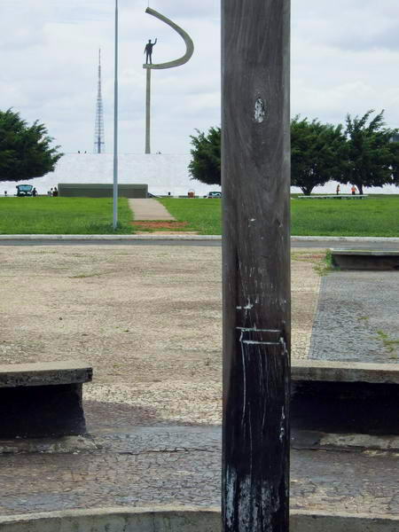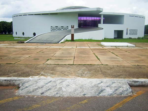 ![]() Brasilia's first mass was held here at the highest spot in the city - attended by Costa and Niemeyer who were atheists. There are two rings of concrete seating whose shape suggests a car ryre. In the background the JK memorial and TV tower. |