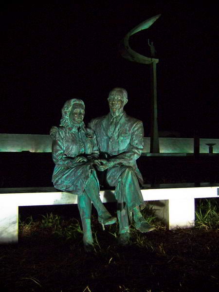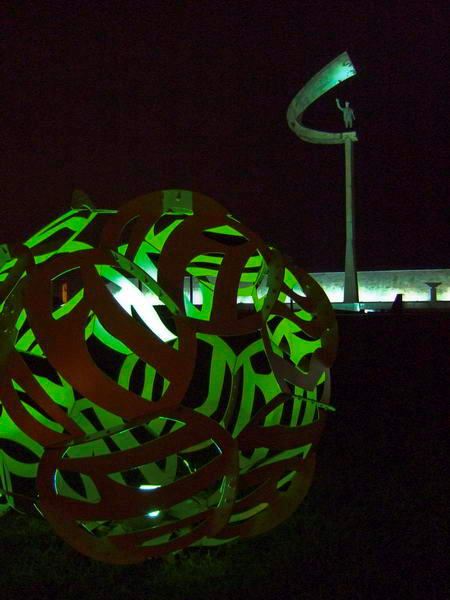 ![]() ![]() Odd ball and Juscelino Kubitschek memorial with him and a sickle (no hammer.) Right: Juscelino Kubitschek and his wife Sarah on a bench outside |